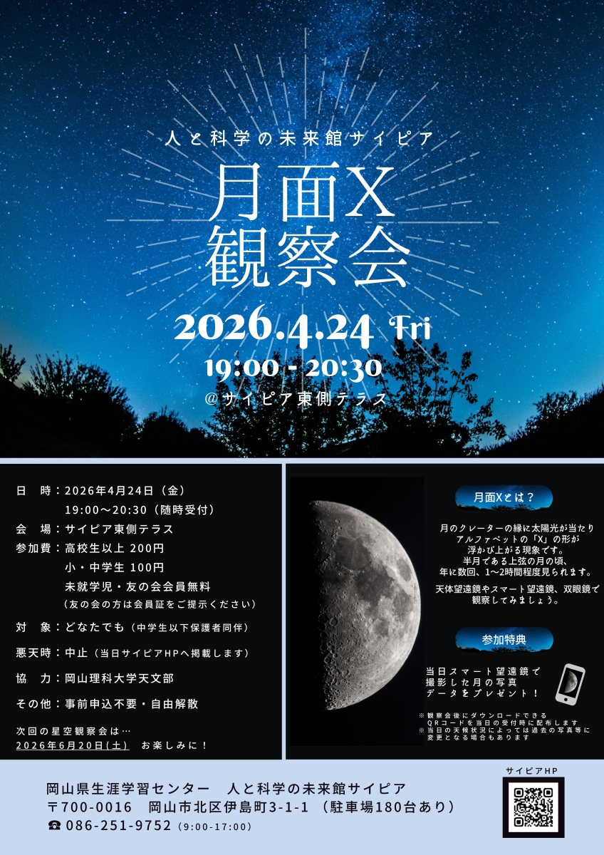 2026年6月20日(土)『月と金星の観察会』を予定しています。お楽しみに!