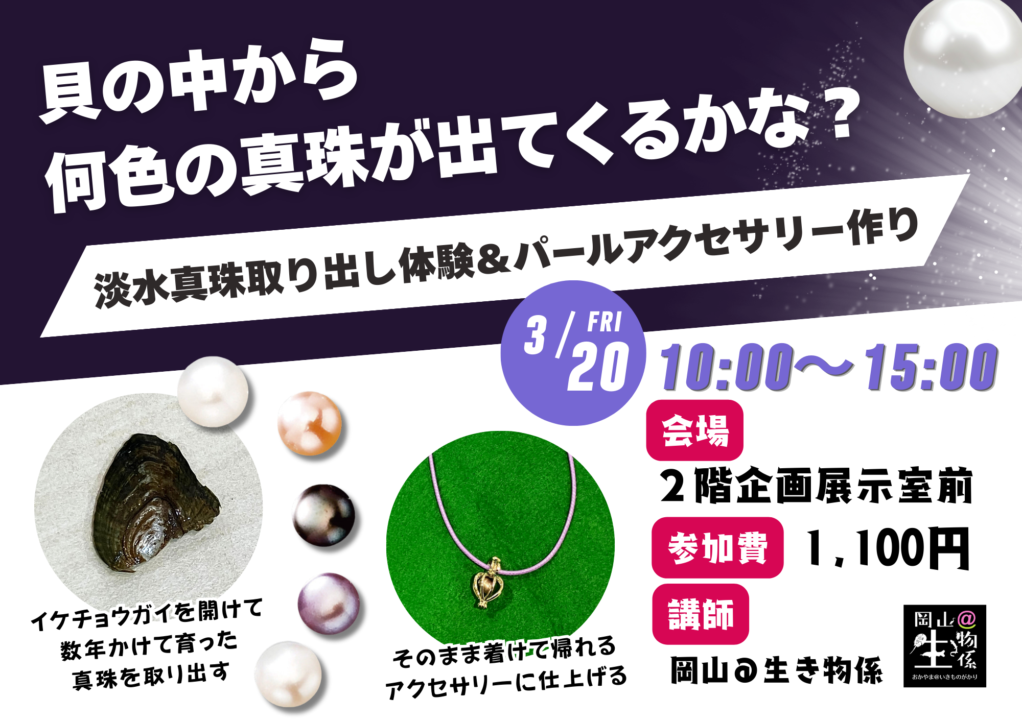 淡水真珠取り出し体験&パールアクセサリー作り(3/20)